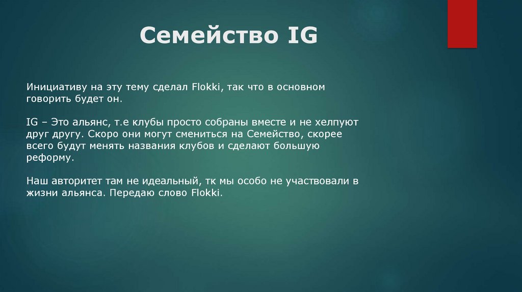 IG – Это альянс, т.е клубы просто собраны вместе и не хелпуют
