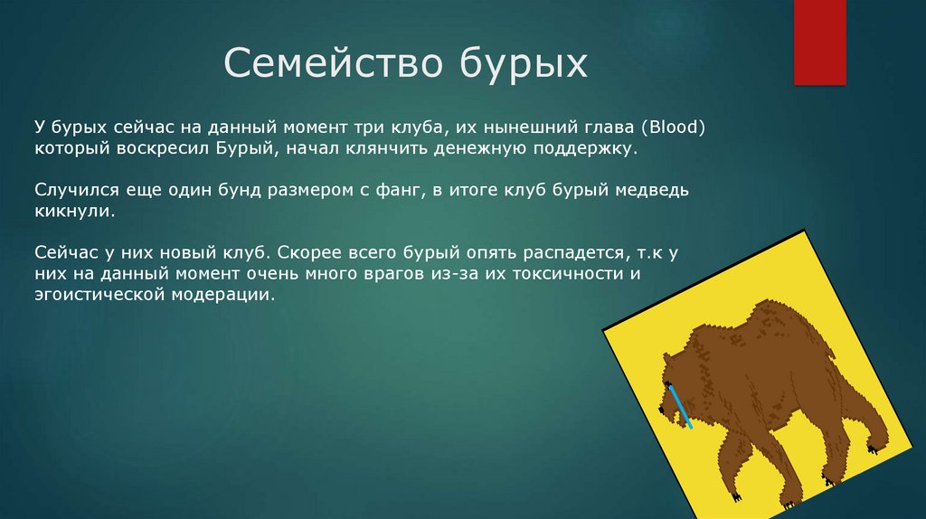 Семейство бурыхУ бурых сейчас на данный момент три клуба, их нынешний глава (Blood)