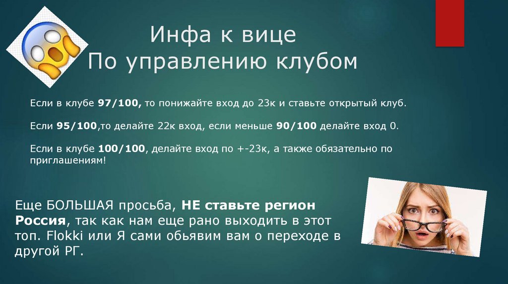 Если в клубе 97/100, то понижайте вход до 23к и ставьте открытый клуб.