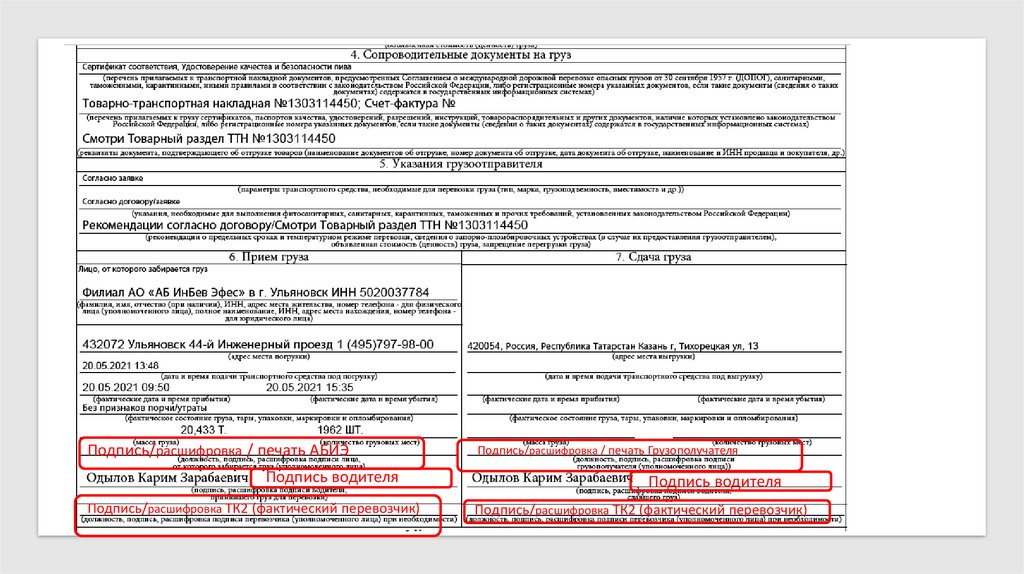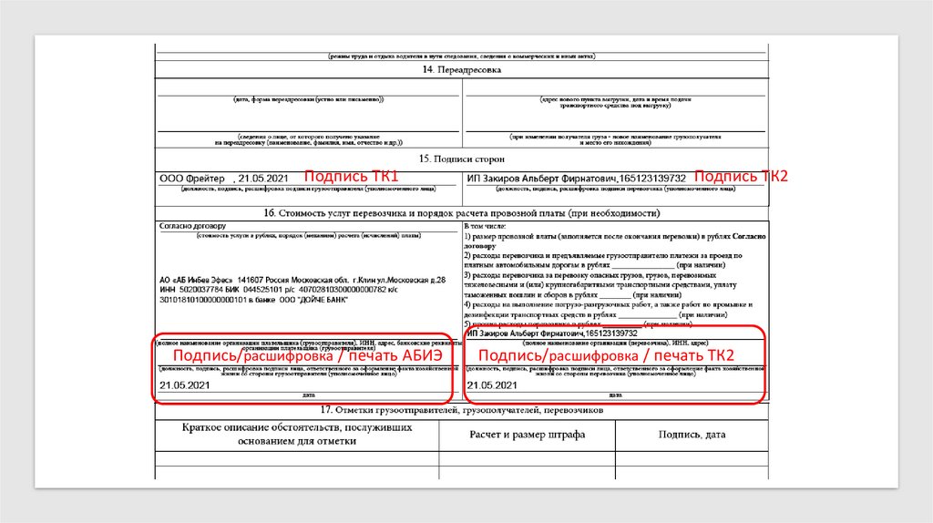 Подпись/расшифровка / печать АБИЭПодпись водителя