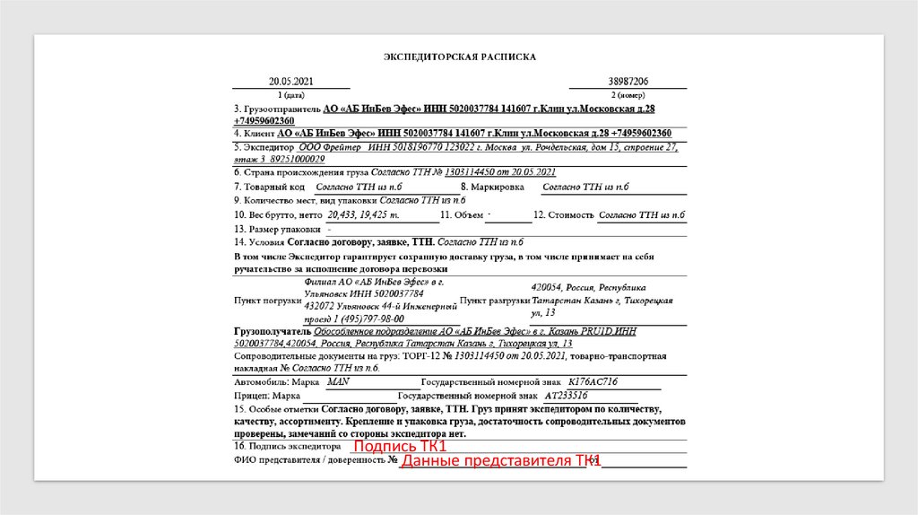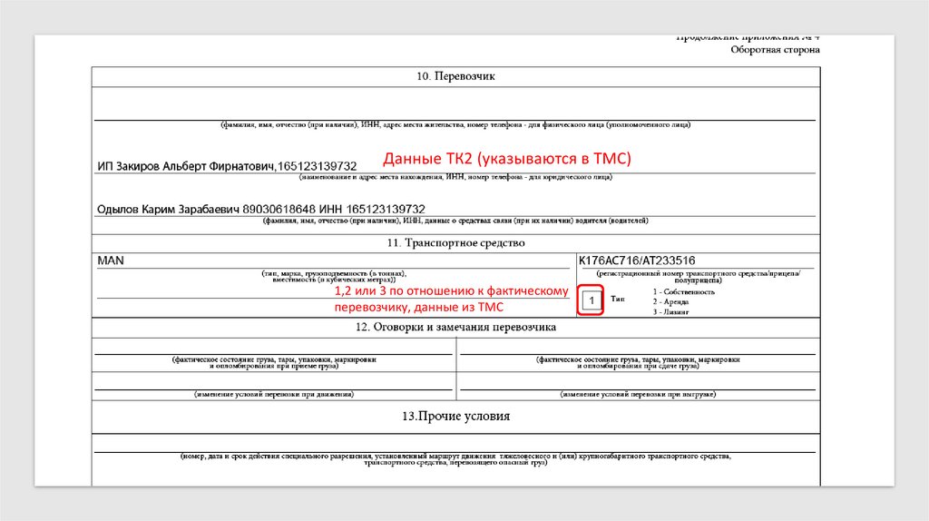 Данные ТК2 (указываются в ТМС)1,2 или 3 по отношению к фактическому