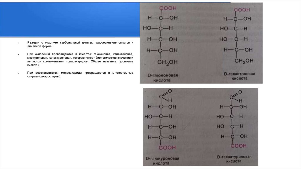 ОСНОВНЫЕ РЕАКЦИИМОНОСАХАРИДОВ, ПРОДУКТЫ