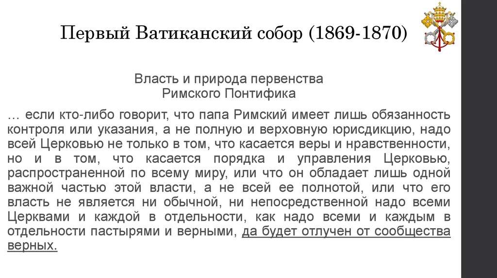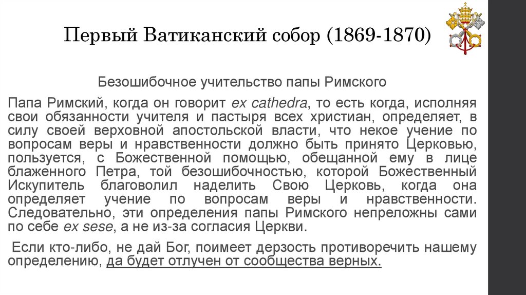 Первый Ватиканский собор (1869-1870)Безошибочное учительство папы Римского