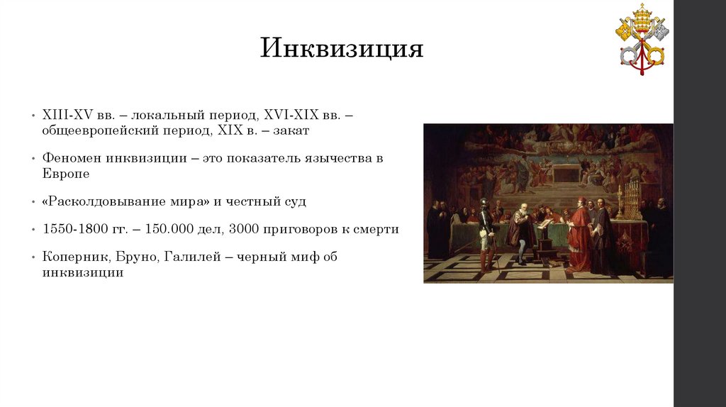 ИнквизицияXIII-XV вв. – локальный период, XVI-XIX вв. –