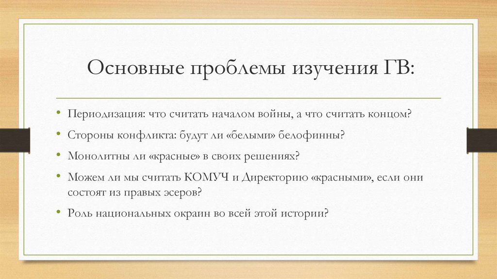 Основные проблемы изучения ГВ:Периодизация: что считать началом войны, а что считать концом?
