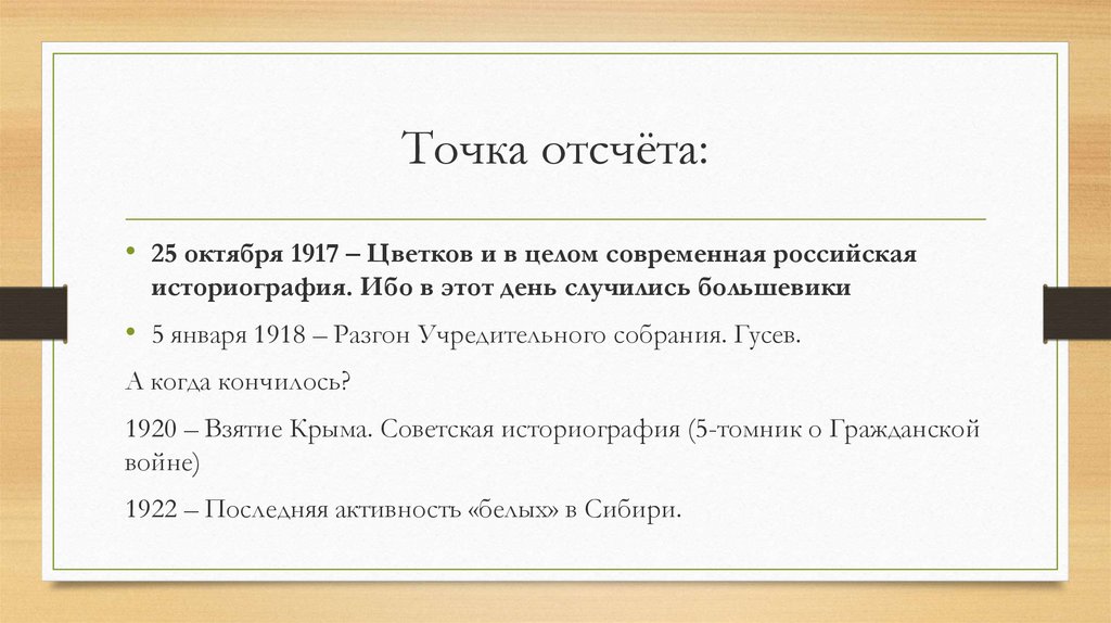Точка отсчёта:• 25 октября 1917 – Цветков и в целом современная российская