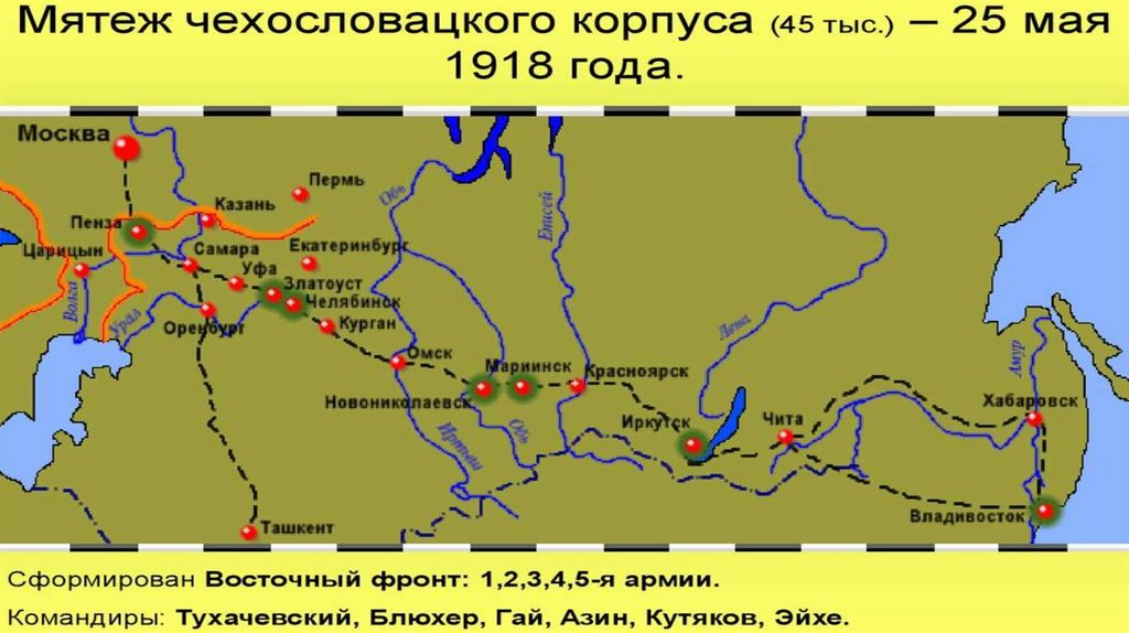 • НО: успех «белых» в 1918 определил мятеж Чехословацкого корпуса, который