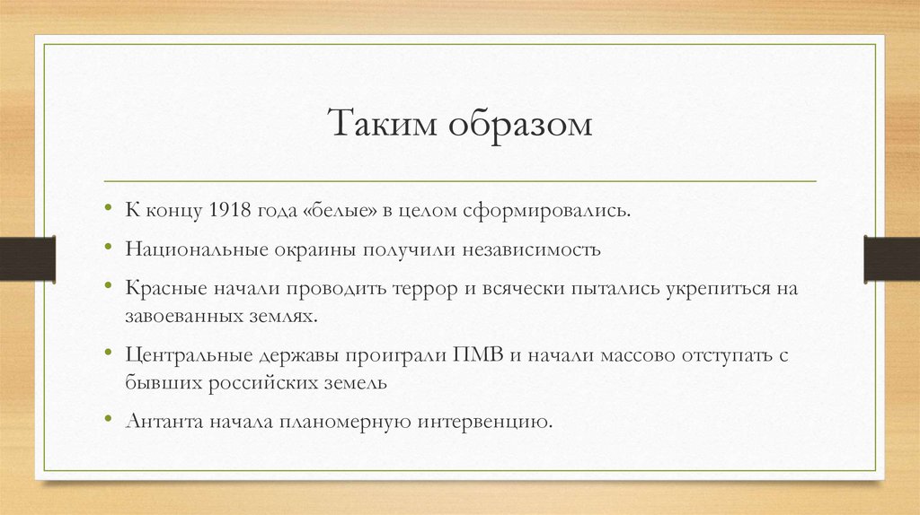 Таким образом• К концу 1918 года «белые» в целом сформировались.