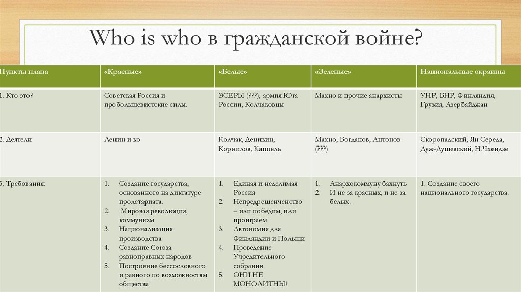 Who is who в гражданской войне?Пункты плана