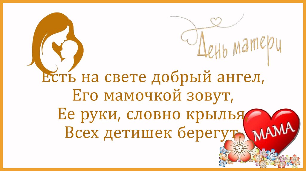 Есть на свете добрый ангел,Его мамочкой зовут,