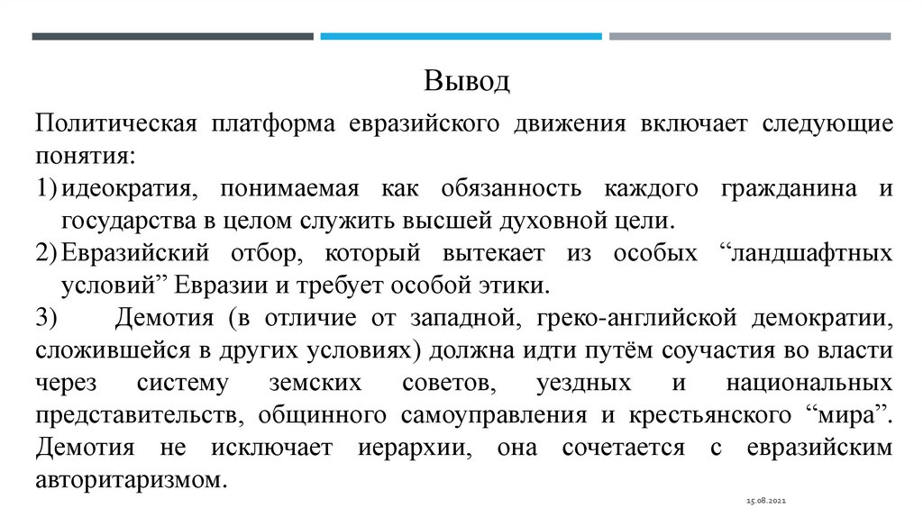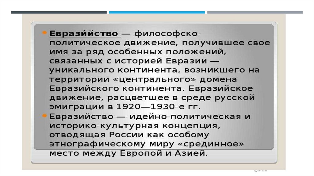 Политическое движение евразийцевШамсутдинова Дилара А., 4А