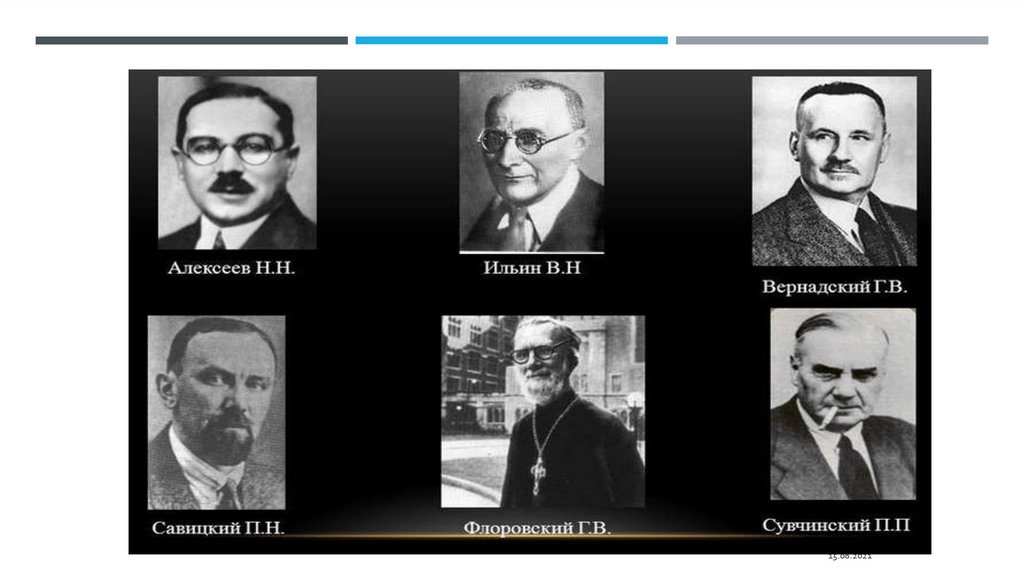 Карсавин, Н. Лосский, Б. Вышеславцев, богословы Г. Флоровский, В. Зенковский, Г.