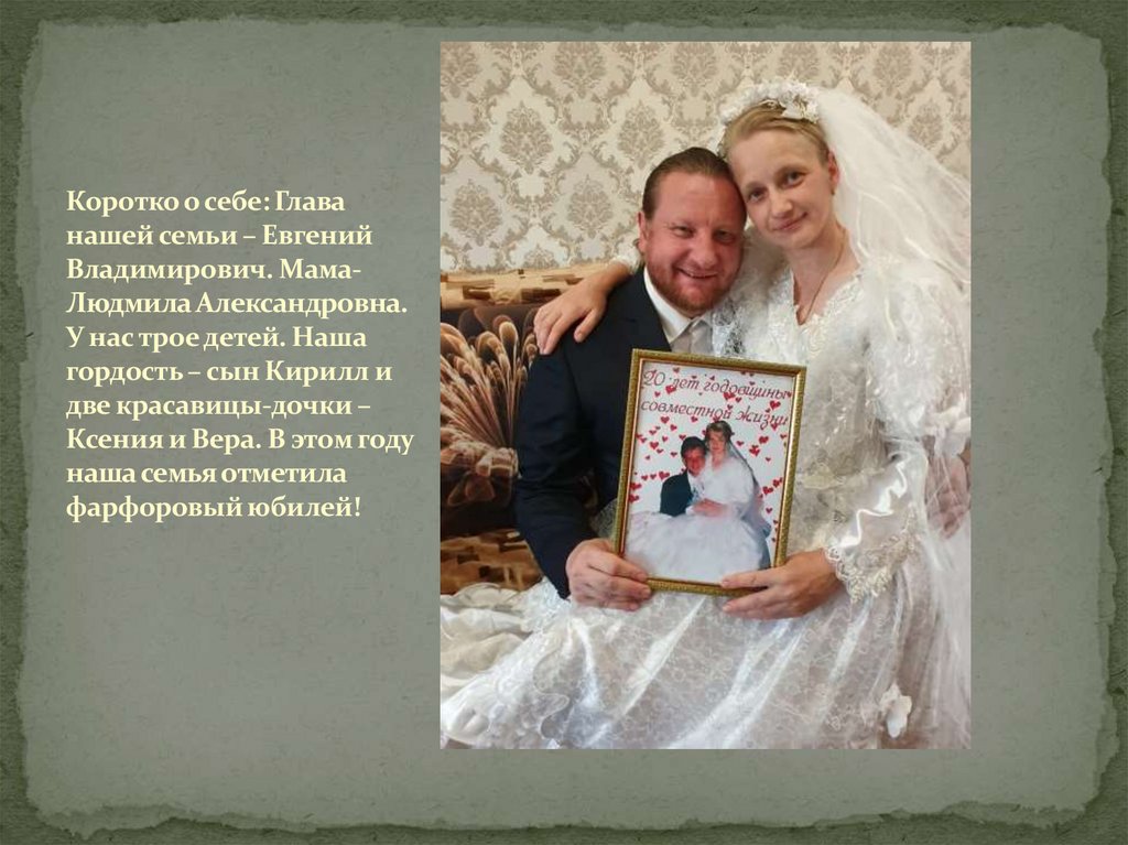 Коротко о себе: Главанашей семьи – Евгений