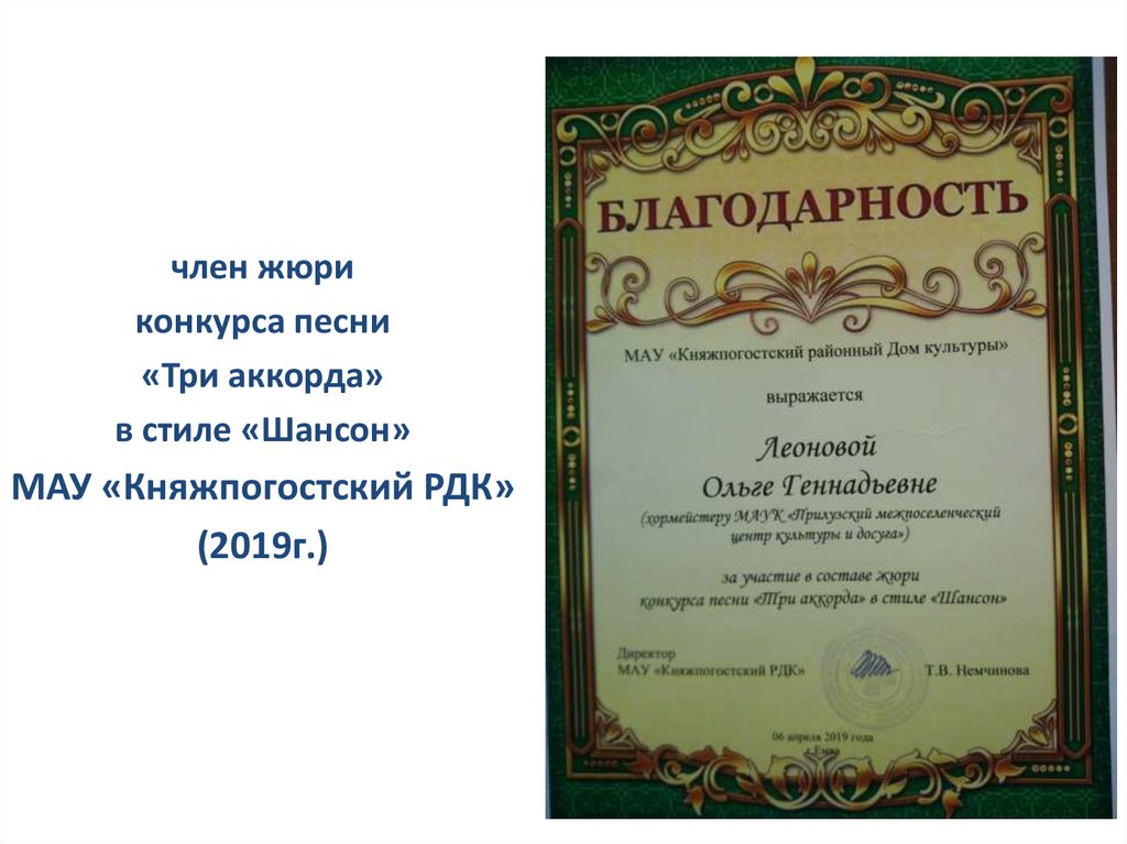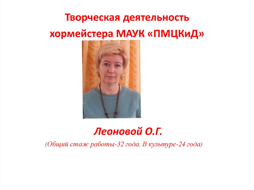 Творческая деятельность хормейстера МАУК «ПМЦКиД» Леоновой О.Г
