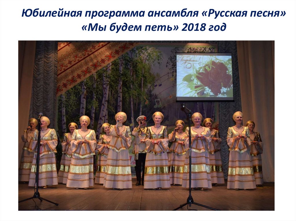 Юбилейная программа ансамбля «Русская песня»«Мы будем петь» 2018 год