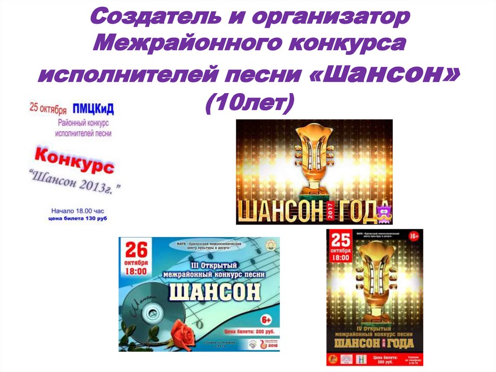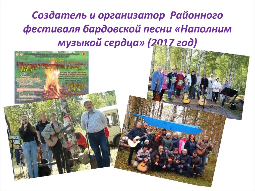 Создатель и организатор Районногофестиваля бардовской песни «Наполним