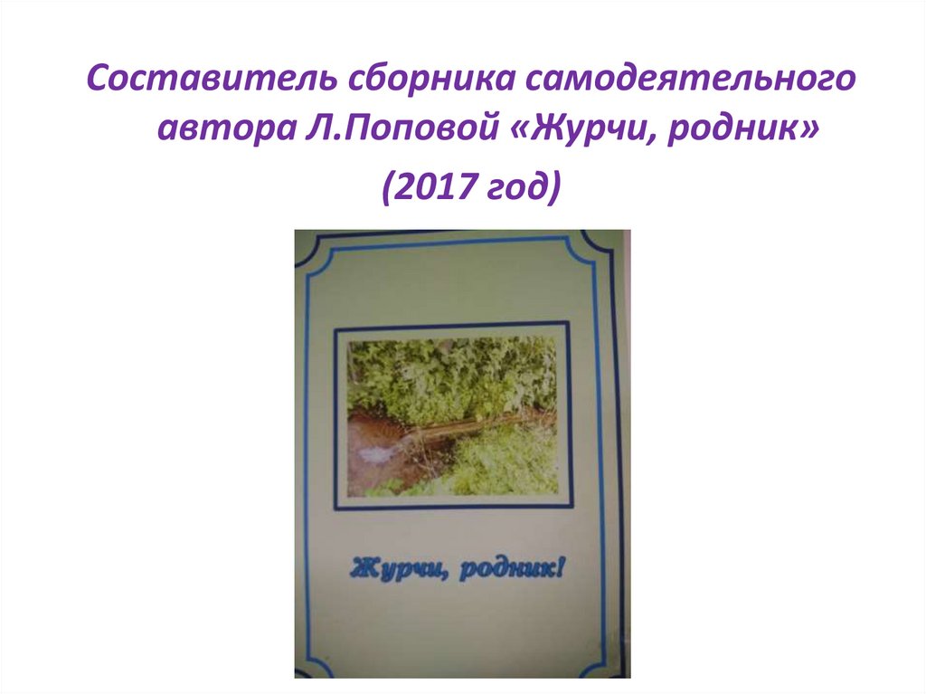 Составитель сборника самодеятельногоавтора Л.Поповой «Журчи, родник»