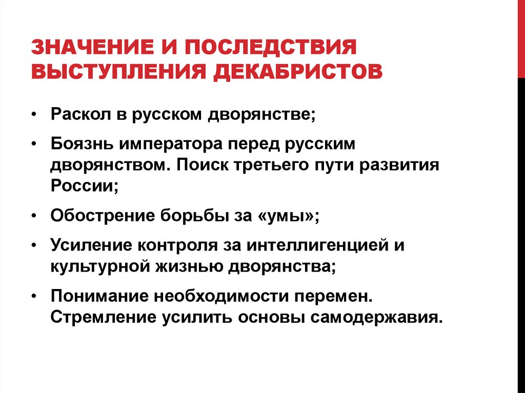 ЗНАЧЕНИЕ И ПОСЛЕДСТВИЯВЫСТУПЛЕНИЯ ДЕКАБРИСТОВ