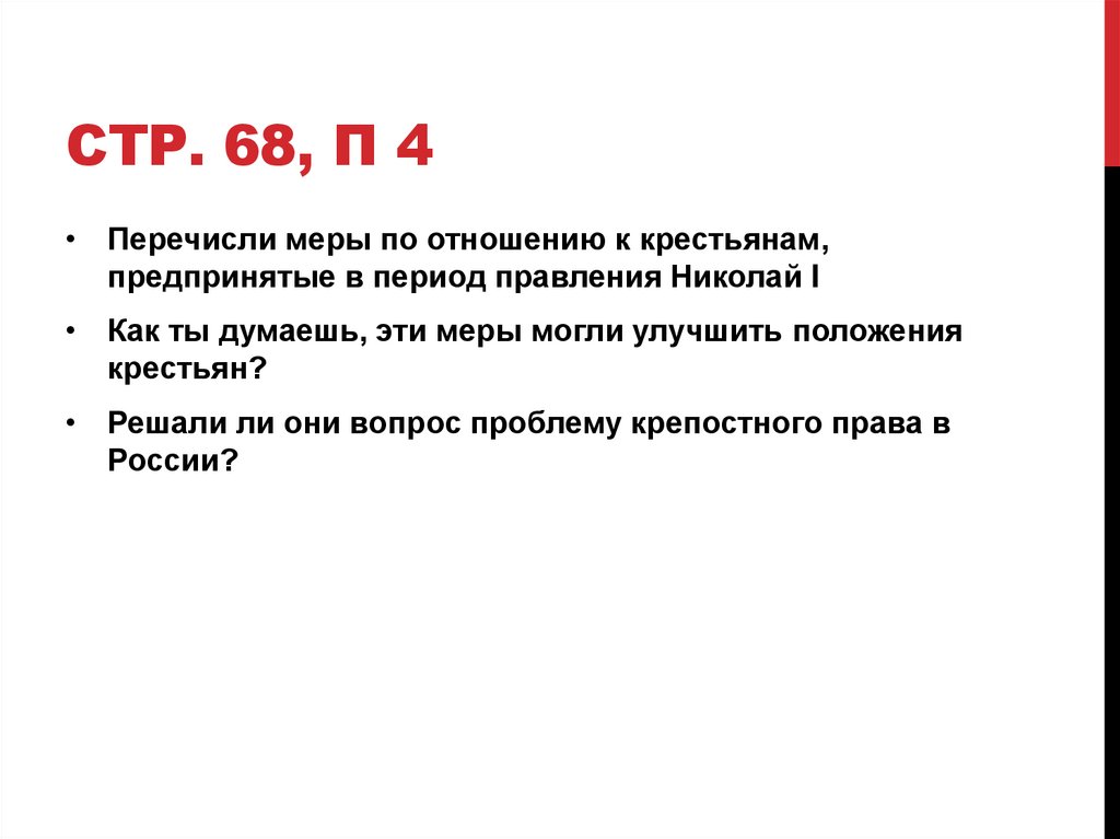 СТР. 68, П 4• Перечисли меры по отношению к крестьянам,