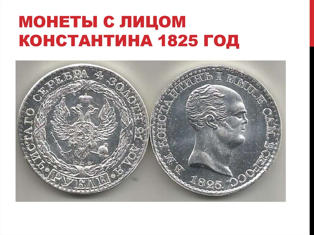 МОНЕТЫ С ЛИЦОМКОНСТАНТИНА 1825 ГОД