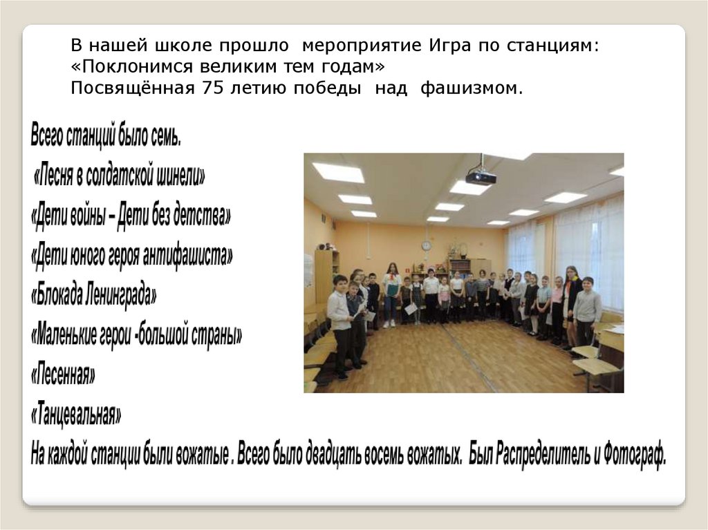 В нашей школе прошло мероприятие Игра по станциям:«Поклонимся великим тем годам»