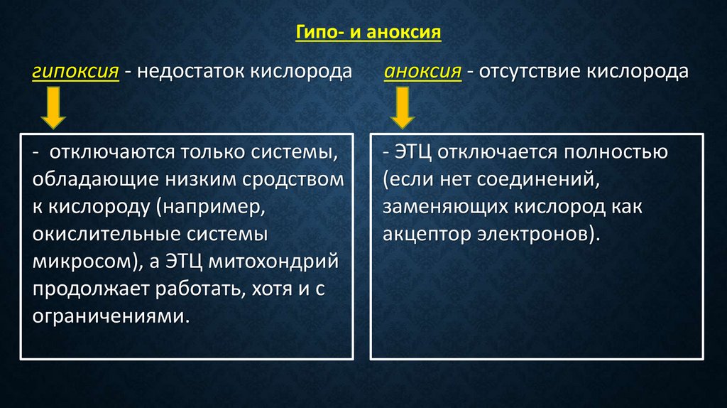 Гипо- и аноксиягипоксия - недостаток кислорода