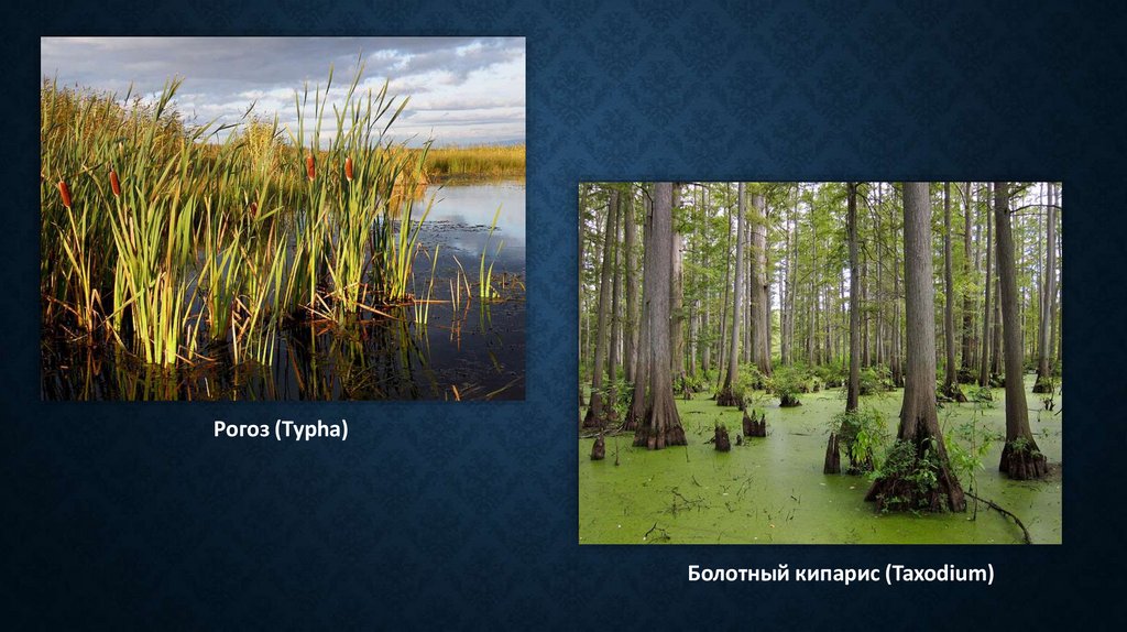 Рогоз (Typha)Болотный кипарис (Taxodium)