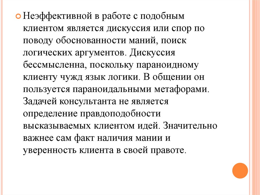 Консультант, встретившись с параноиднымклиентом, должен быть готов к его недоверию и