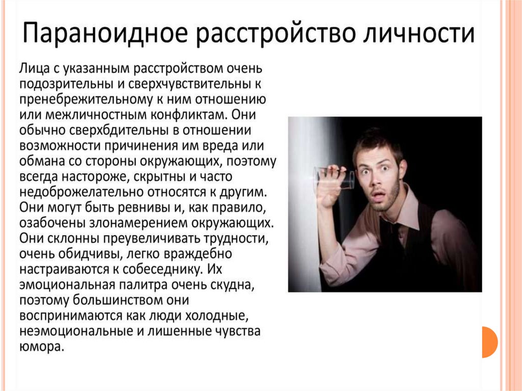 Параноидное расстройство личности – расстройстволичности, для которого характерны злопамятность, излишняя