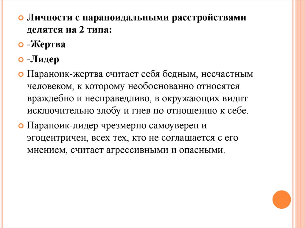Личности с параноидальными расстройствамиделятся на 2 типа: