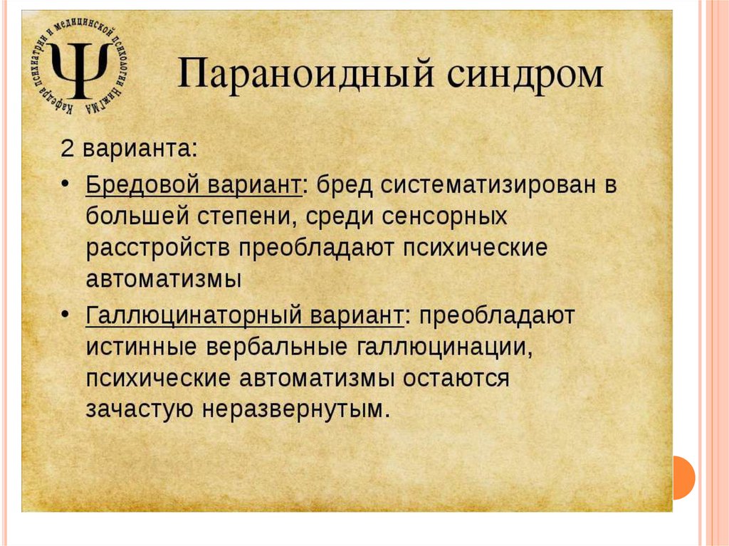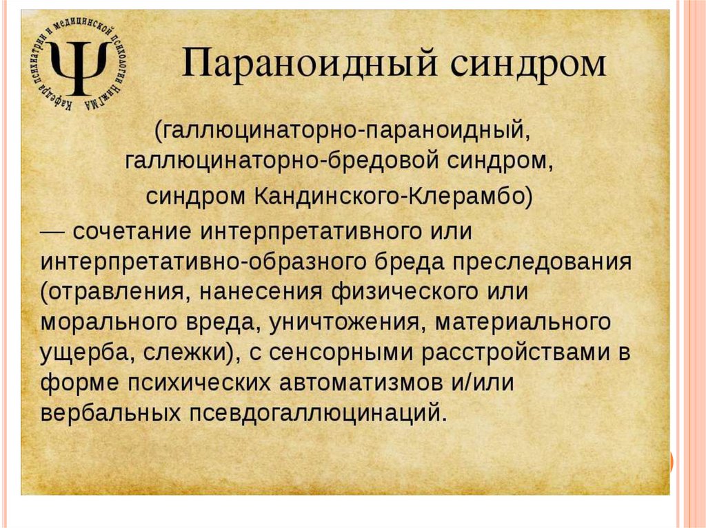 ПАРАНОИДАЛЬНЫХ РАССТРОЙСТВАХ