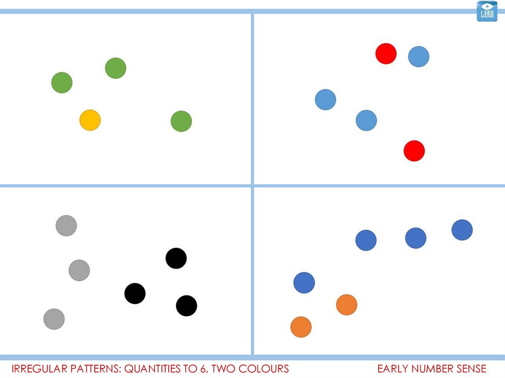 IRREGULAR PATTERNS: QUANTITIES TO 6, TWO COLOURSEARLY NUMBER SENSE