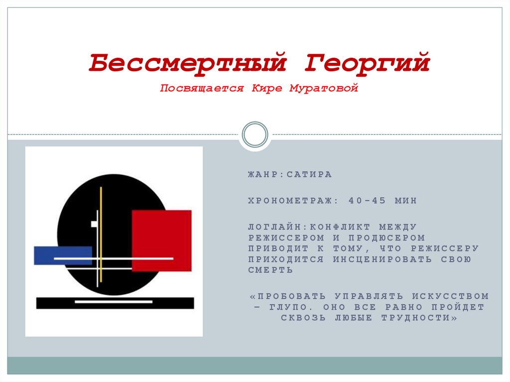 Бессмертный ГеоргийПосвящается Кире Муратовой