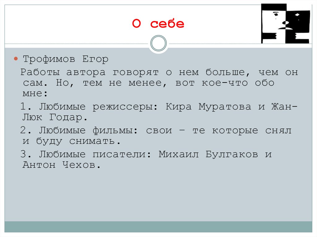 1. Любимые режиссеры: Кира Муратова и ЖанЛюк Годар.