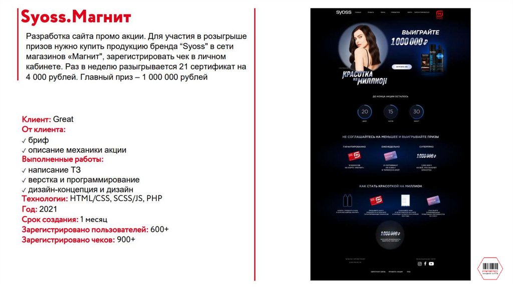 Разработка сайта акции