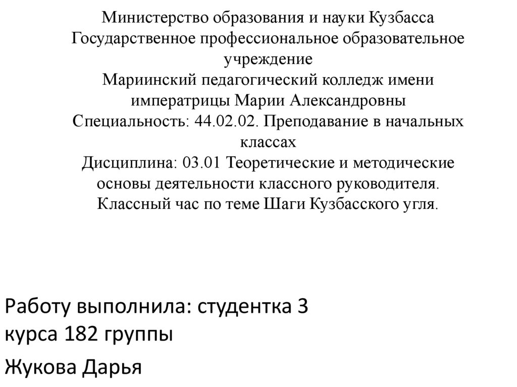 Министерство образования и науки КузбассаГосударственное профессиональное образовательное