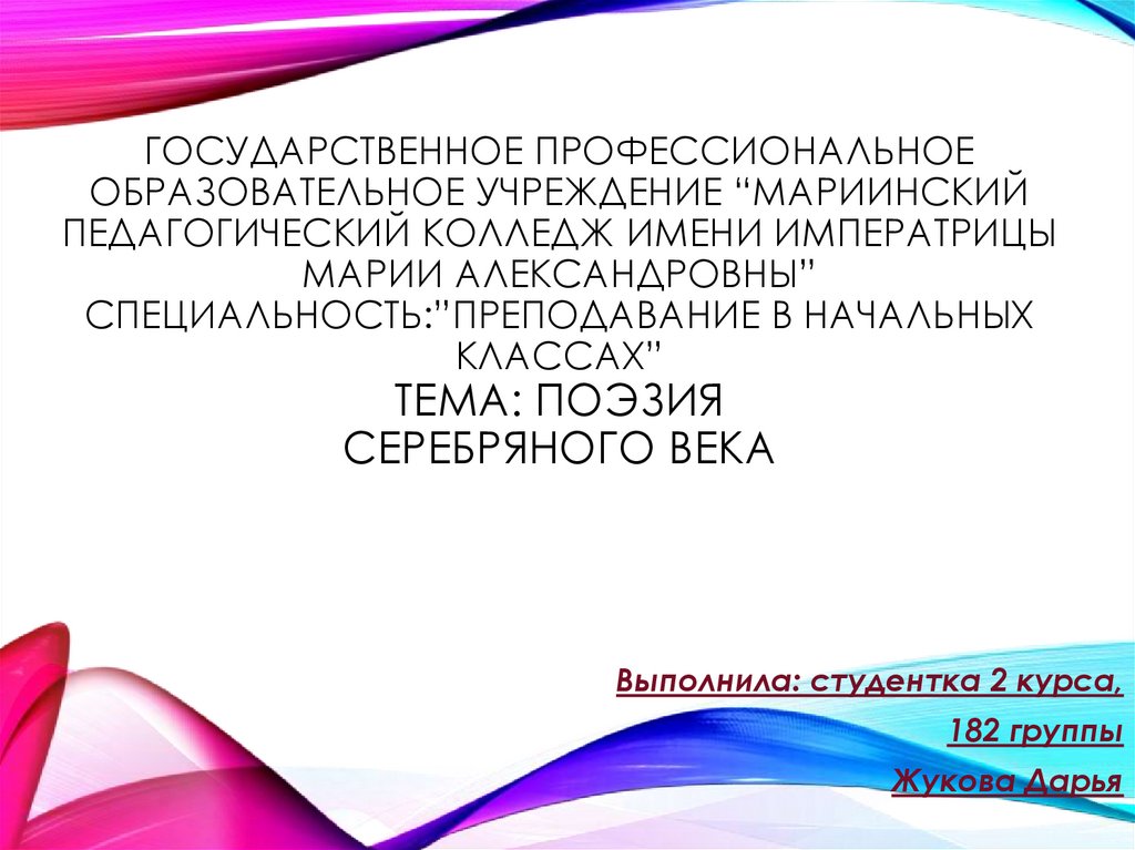 ГОСУДАРСТВЕННОЕ ПРОФЕССИОНАЛЬНОЕОБРАЗОВАТЕЛЬНОЕ УЧРЕЖДЕНИЕ “МАРИИНСКИЙ