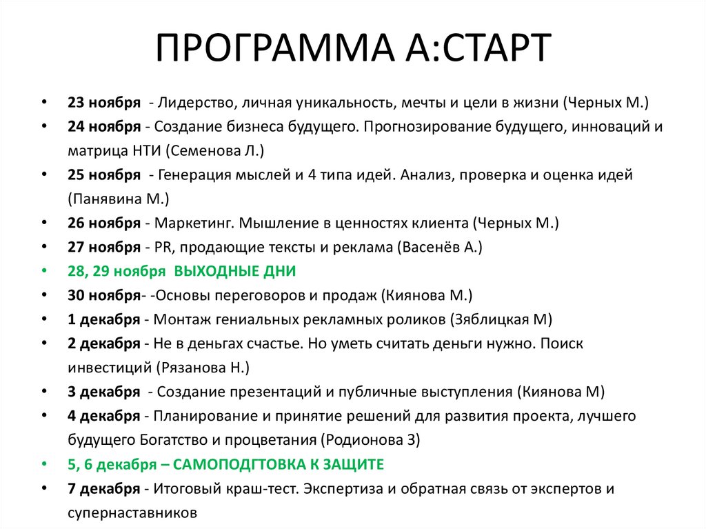 ПРОГРАММА А:СТАРТ23 ноября - Лидерство, личная уникальность, мечты и цели в жизни (Черных М.)