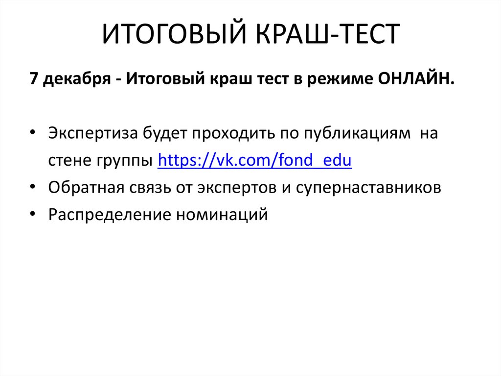 7 декабря - Итоговый краш-тест. Экспертиза и обратная связь от экспертов и