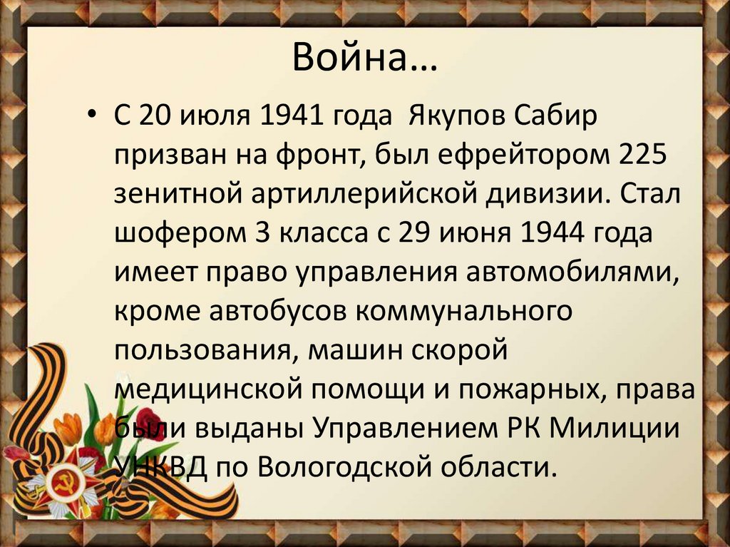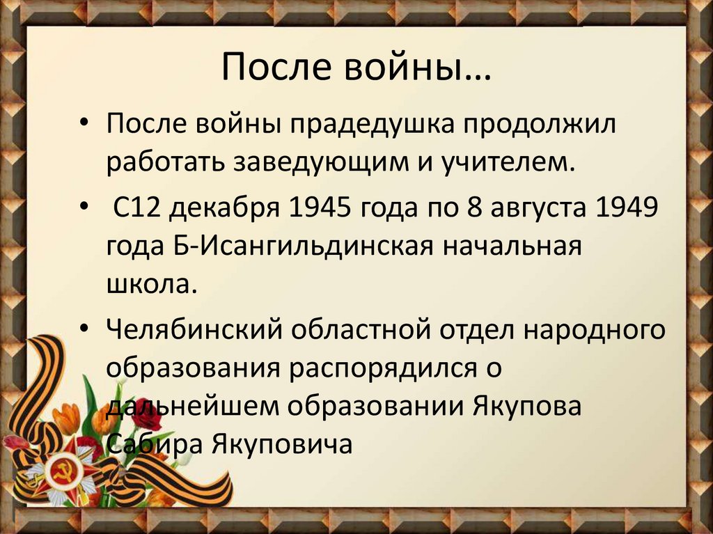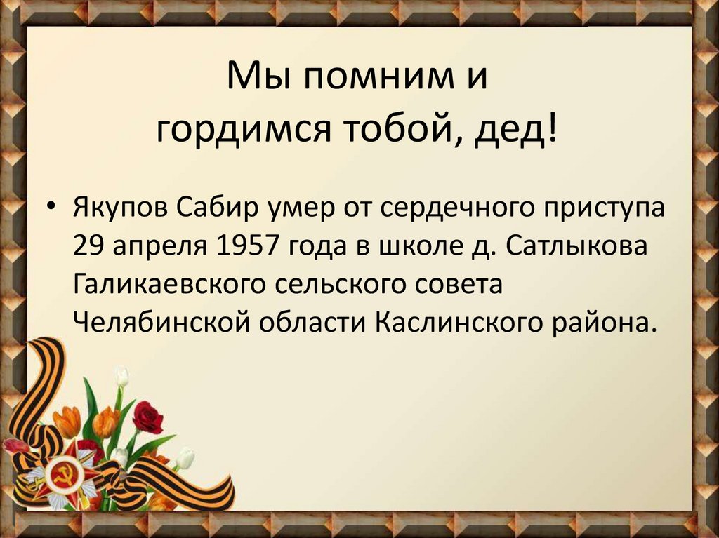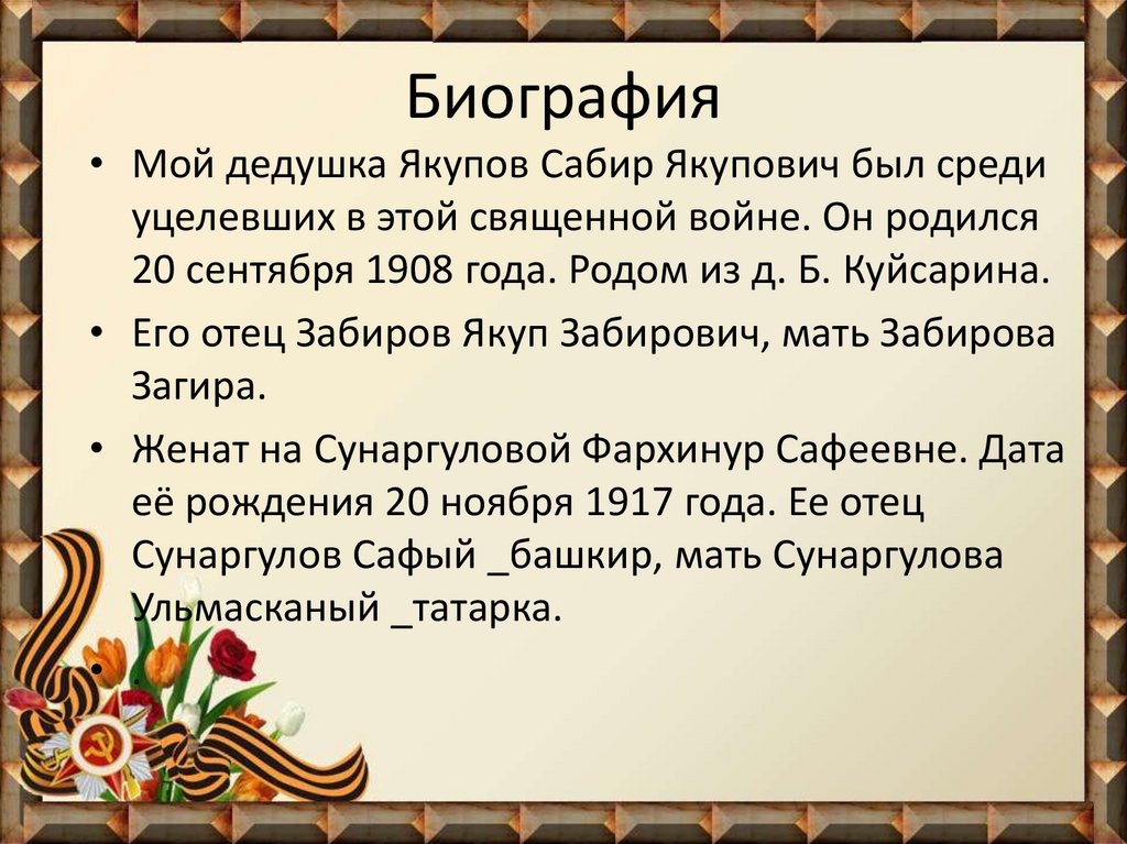 Биография• Мой дедушка Якупов Сабир Якупович был среди