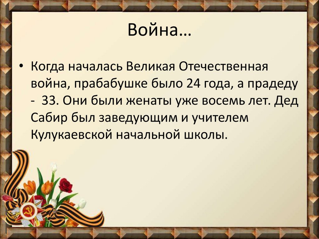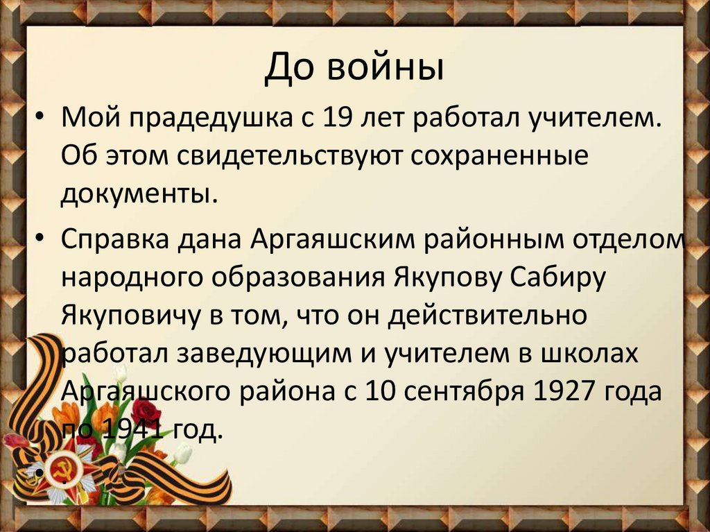 До войны• Мой прадедушка с 19 лет работал учителем.