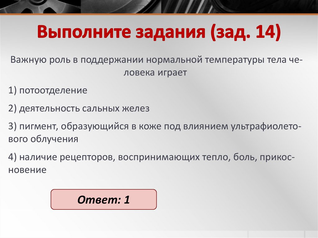 Важную роль в поддержании нормальной температуры тела человека играет1) потоотделение
