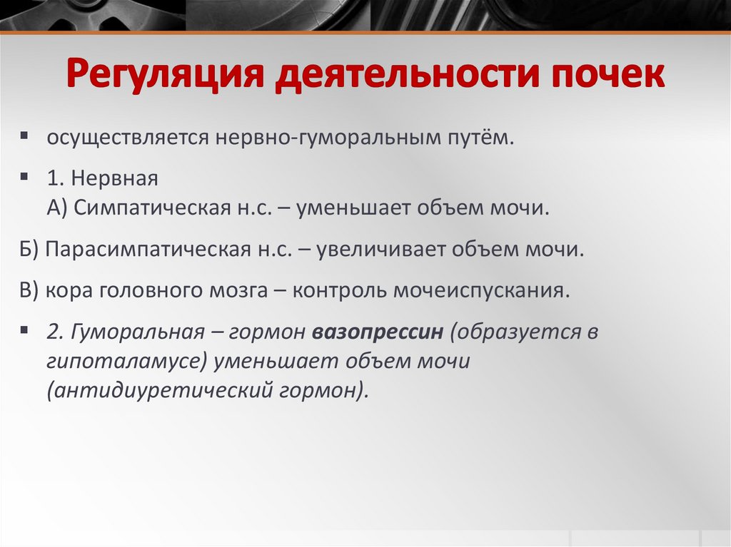 2. Гуморальная – гормон вазопрессин (образуется в