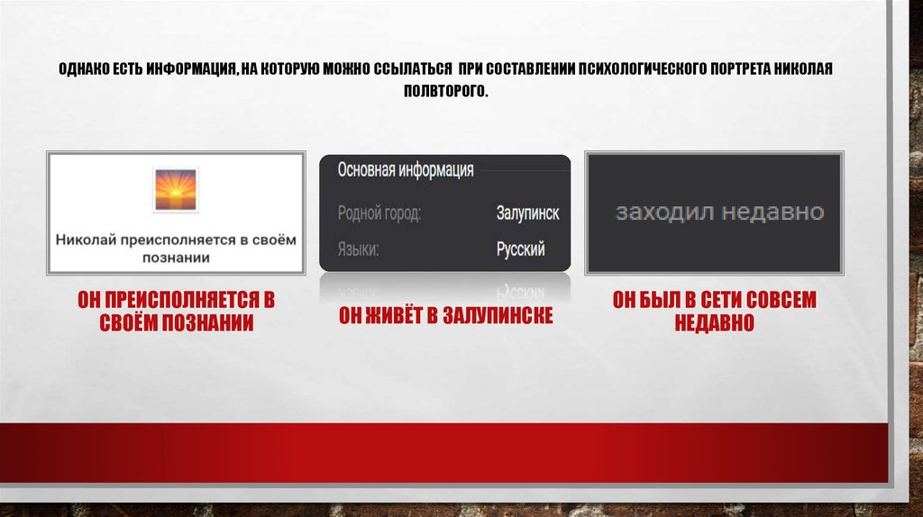 ОДНАКО ЕСТЬ ИНФОРМАЦИЯ, НА КОТОРУЮ МОЖНО ССЫЛАТЬСЯ ПРИ СОСТАВЛЕНИИ ПСИХОЛОГИЧЕСКОГО ПОРТРЕТА НИКОЛАЯПОЛВТОРОГО.