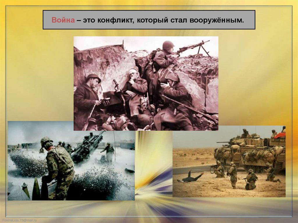Война – это конфликт, который стал вооружённым.FokinaLida.75@mail.ru