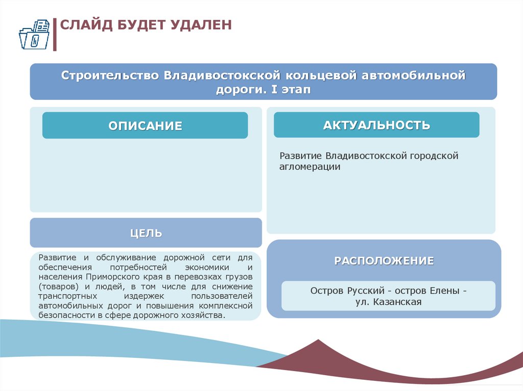 СЛАЙД БУДЕТ УДАЛЕНСтроительство Владивостокской кольцевой автомобильной