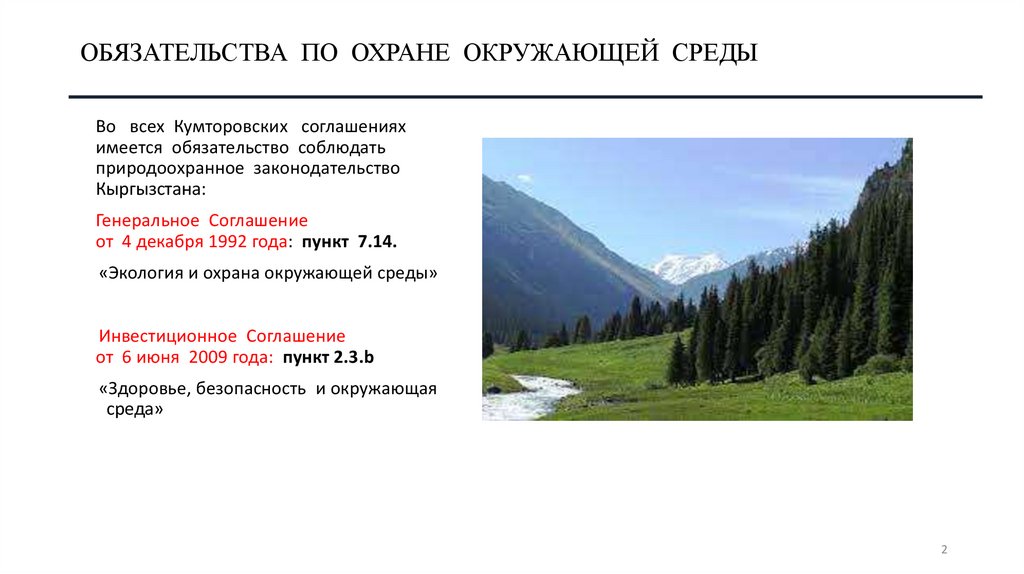 ОБЯЗАТЕЛЬСТВА ПО ОХРАНЕ ОКРУЖАЮЩЕЙ СРЕДЫВо всех Кумторовских соглашениях