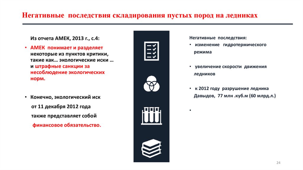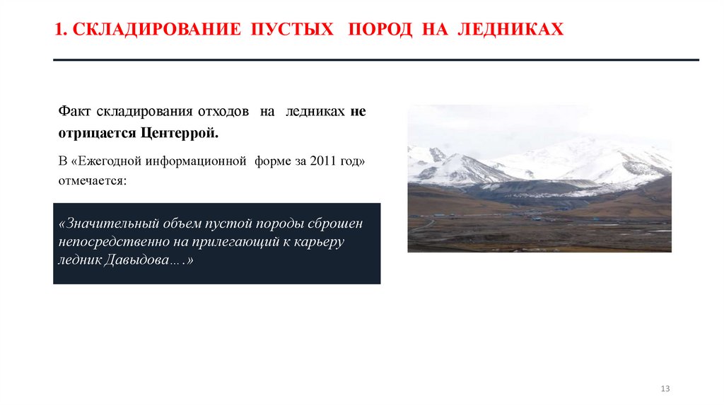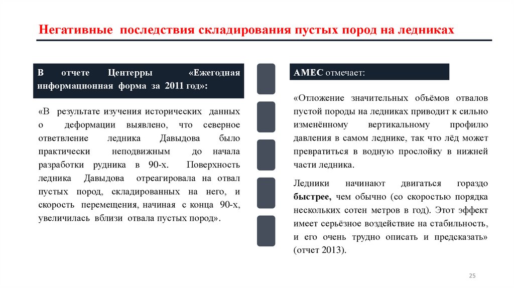 Негативные последствия складирования пустых пород на ледникахИз отчета АМЕК, 2013 г., с.4: