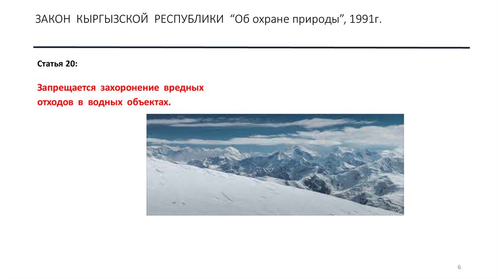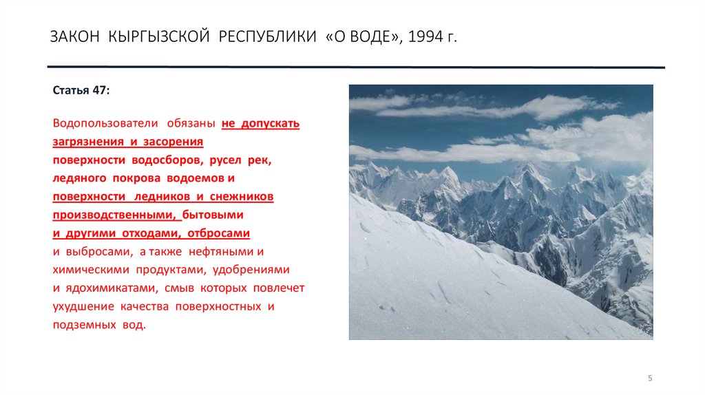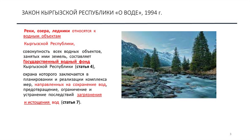 ЗАКОН КЫРГЫЗСКОЙ РЕСПУБЛИКИ «О ВОДЕ», 1994 г.Реки, озера, ледники относятся к