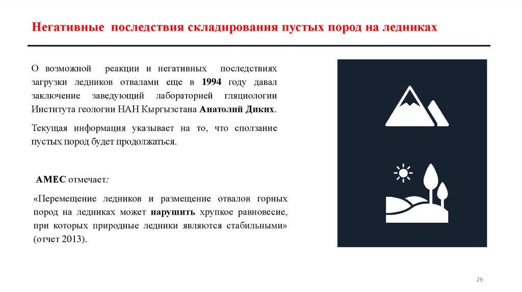 Негативные последствия складирования пустых пород на ледникахО возможной реакции и негативных последствиях